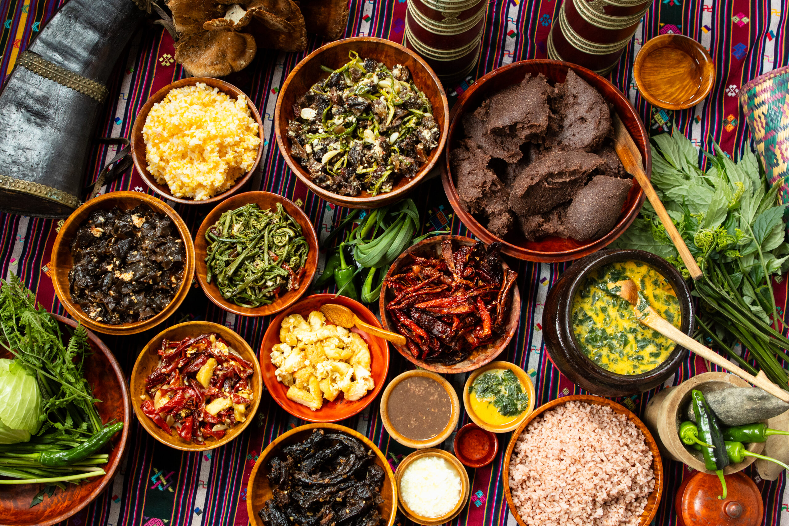 不丹的飲食文化獨具特色,以辣椒和起司為主要調味料,口味濃郁。