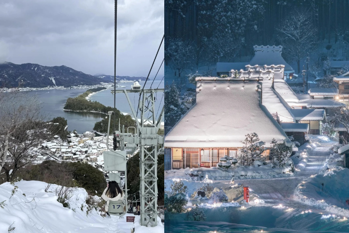 京都秘境,寧靜的古老村落,保存大量傳統茅草屋頂建築,接著去日本三景之一的天橋立,搭乘纜車登上展望台,彎腰從胯下觀看,沙洲彷彿一條飛龍在天。