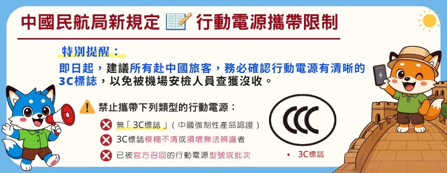 即日起,建議所有赴中國旅客,務必確認行動電源有清晰的