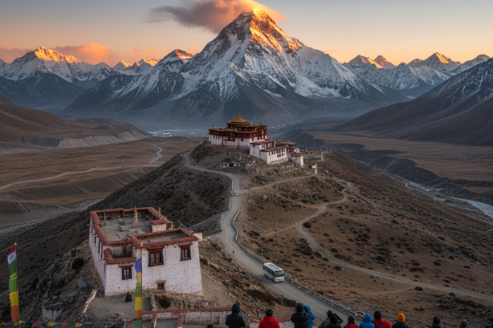 包含珠峰景交車、探訪世界最高海拔寺廟絨布寺,並在加烏拉山口觀景臺遠眺,近距離感受珠穆朗瑪峰的日落震撼。