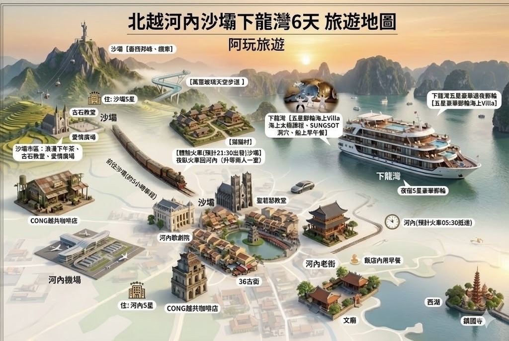 ⛰️ 海拔標註: ⛰️ 海拔:⛰️ 沙壩 1,500m ➔ 🇻🇳 河內 15m。