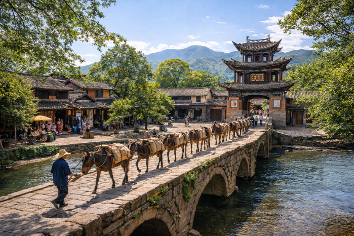 被譽為「被時光遺忘的角落」。走過玉津橋、逛逛寺登街,感受沙溪古鎮特有的寧靜與原生態的馬幫歷史。