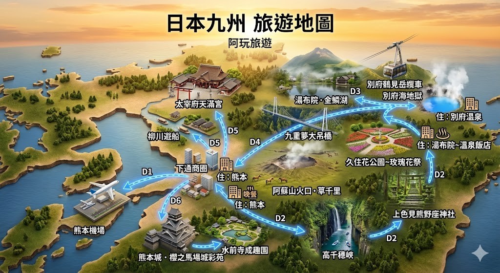 - 提醒:阿蘇、別府纜車風大,建議帶防風外套。