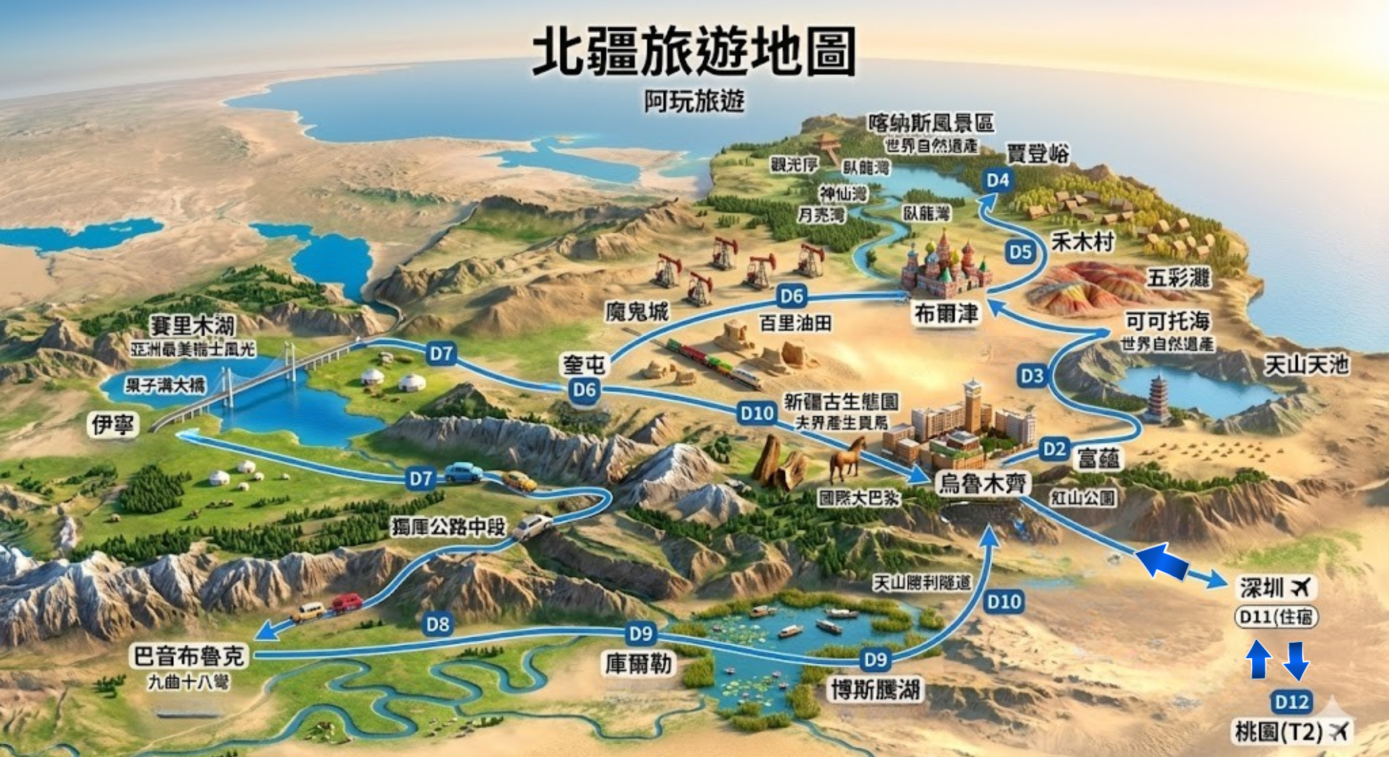 新疆,古稱西域,自張騫鑿空絲路以來,一直是東方與西方的交匯點。北疆,天山以北的廣袤大地,擁有山地草原、高山湖泊的絕美風光。這趟旅程,我們不僅將揭開其神秘面紗,更將穿越古今,領略自然、歷史與人文的交織之美。